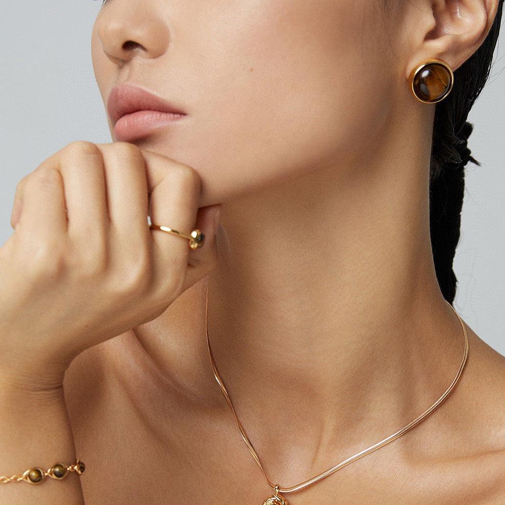 Tiger Eye Growth Ring Hoop Earrings