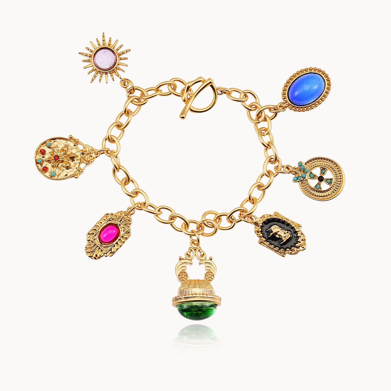 These stones, combined with the vintage gold-plated elements, give the bracelet both its spiritual and aesthetic charm, making it a meaningful accessory that promotes inner peace.