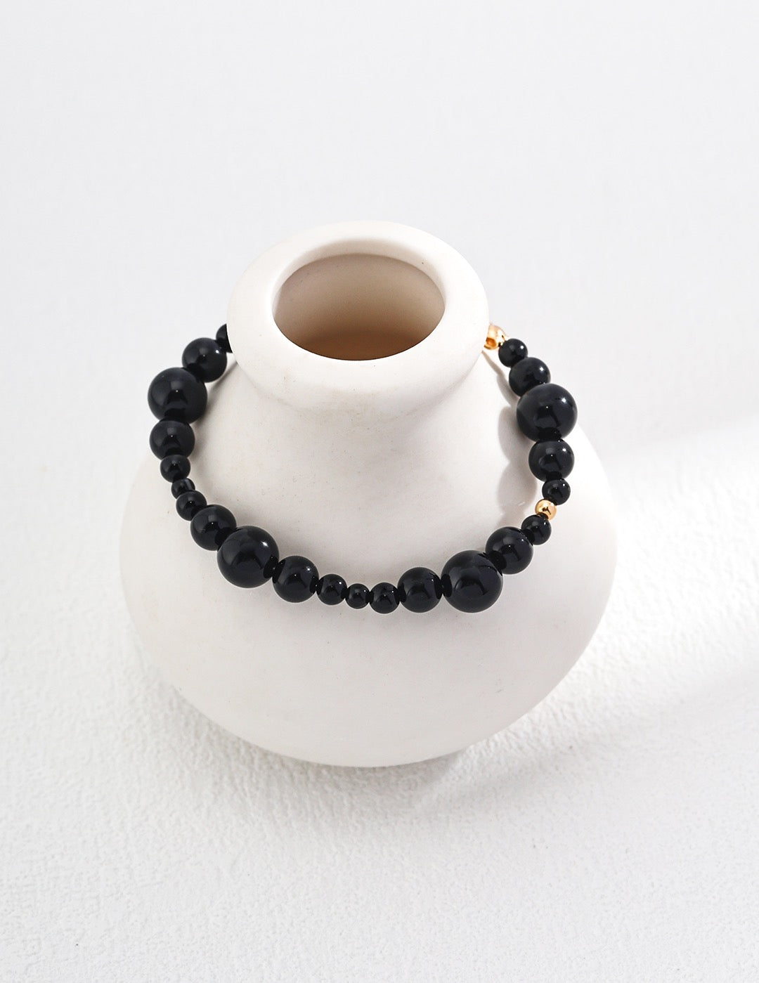• Materials: Crafted with 925 sterling silver and natural black agate beads.