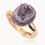 • Design: The central amethyst geode is encased in an intricate setting that preserves its raw, natural energy. The surrounding amethyst and zircon stones add a touch of brilliance, blending the bracelet’s powerful symbolism with sophisticated aesthetics.