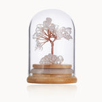 Each tree is meticulously crafted using natural clear quartz crystals, arranged on elegant, flexible wire branches to mimic the flow of nature. The crystals' translucent brilliance reflects light beautifully, symbolizing purity and the limitless potential of positive energy. Encased in a glass bottle, the design exudes sophistication while protecting the tree from external elements, ensuring long-lasting beauty and functionality.