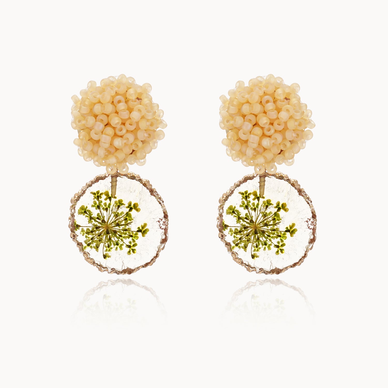 • Materials: Made with high-quality resin and preserved dried flowers, the earrings combine durability with the natural charm of botanical elements.