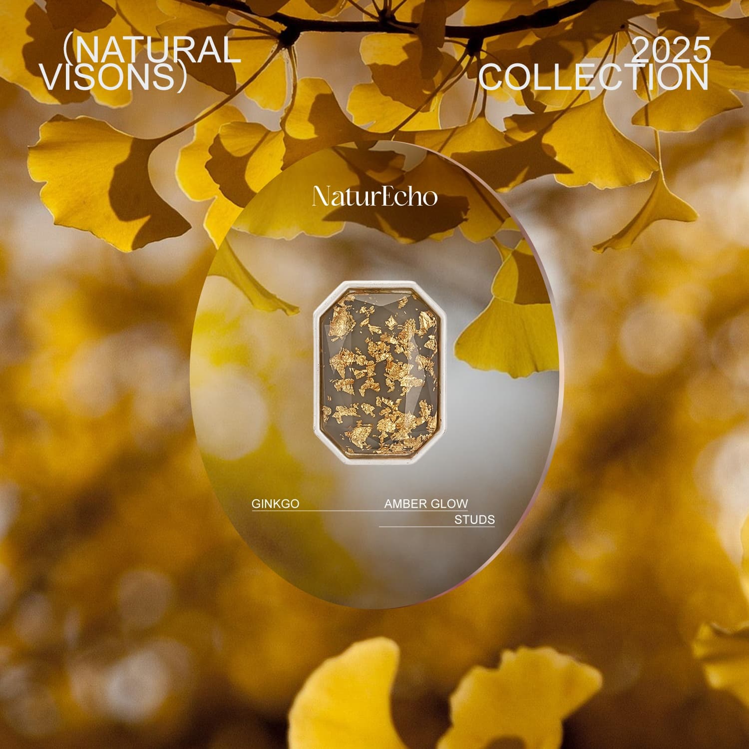 The Ginkgo Amber Glow Studs beautifully capture the essence of autumn with golden flakes resembling delicate ginkgo leaves encased in resin. The warm amber-like tones evoke the richness of a golden autumn, bringing to mind the serene beauty of ginkgo-lined pathways. Symbolizing abundance and elegance, the design pays homage to nature’s timeless artistry while offering the wearer a sense of eternal grace. These earrings are a perfect reflection of the season’s splendor and make a meaningful accessory for those who cherish natural beauty and elegance.