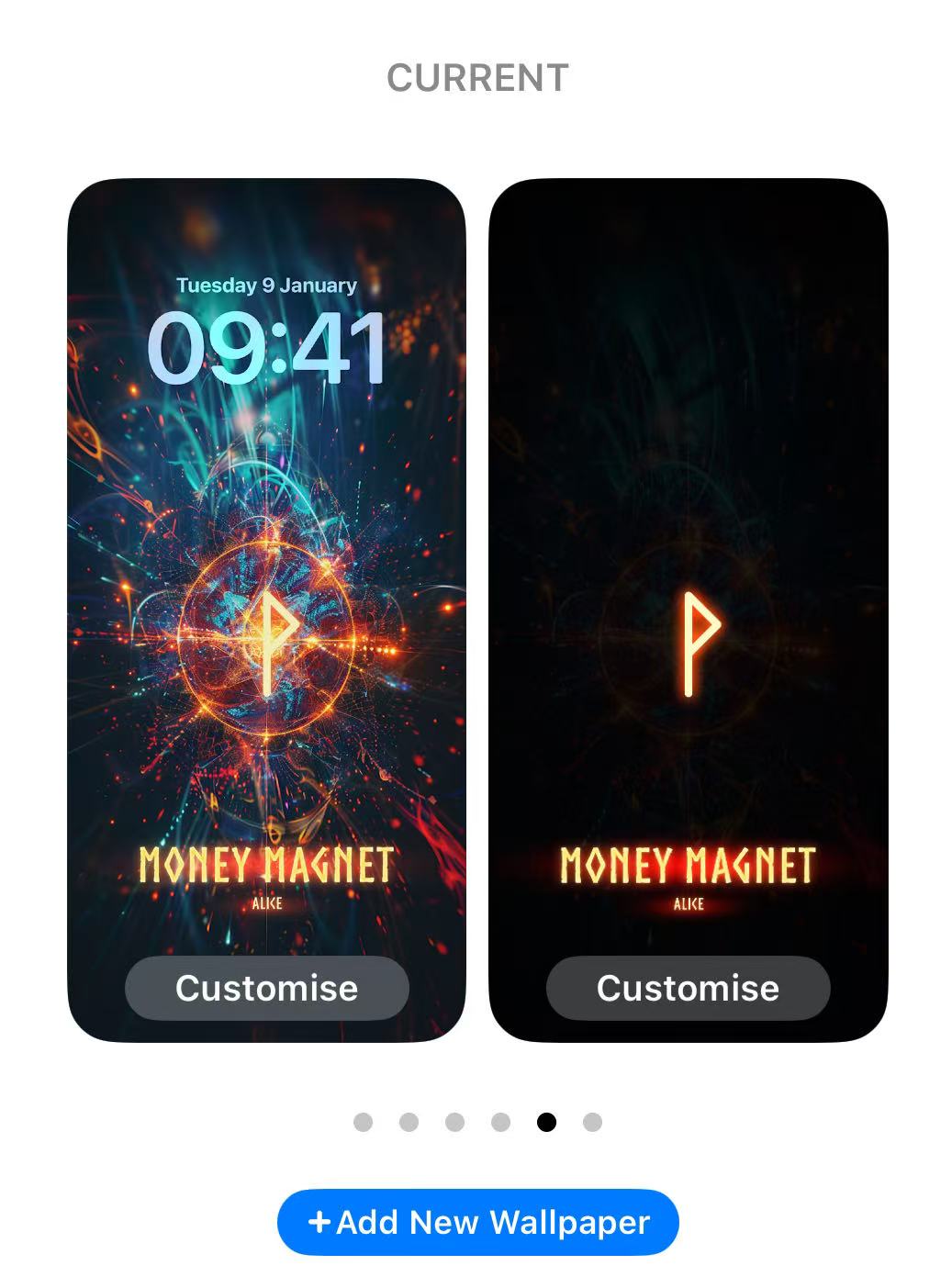 This wallpaper collection is a unique, custom-designed artwork based on your name, combining ancient runic symbols with modern digital design to help strengthen your connection to wealth energy. Each wallpaper incorporates the mysterious power of runes, conveying abundance, success, and wisdom. By merging your name with the symbolic runes of wealth, the wallpaper not only beautifies your phone screen but also serves as a bridge between you and wealth, opportunities, and positive energy, inspiring your creativity and drive, and guiding you toward greater achievements.