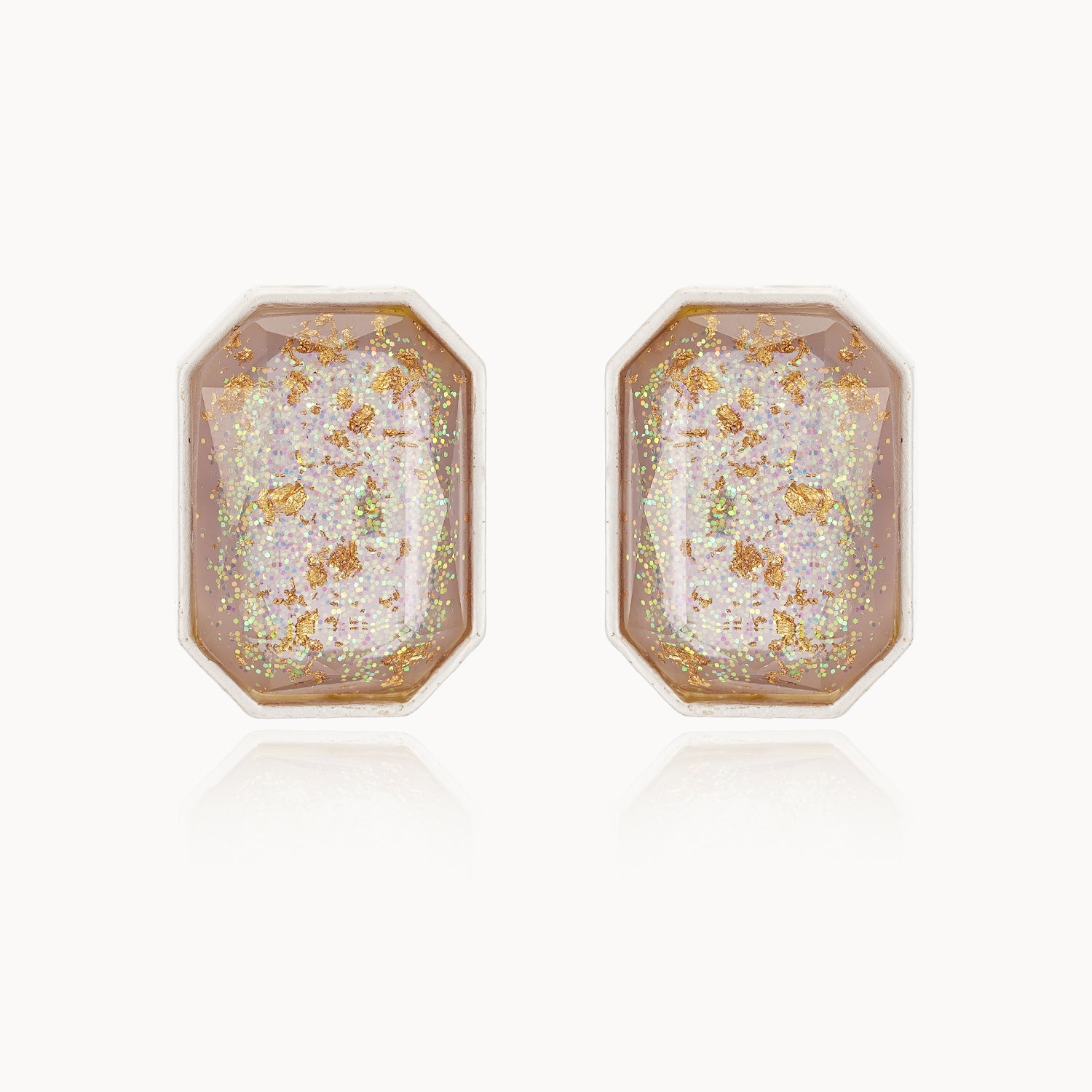 The Starlit in Shell Studs encapsulate a celestial-inspired beauty with shimmering golden flakes and iridescent sparkles suspended in crystal-clear resin. Reminiscent of starlight reflecting on tranquil seashells, these earrings evoke a sense of elegance and wonder. The intricate design and dreamy hues create a timeless piece that bridges natural beauty and cosmic allure, making it a perfect accessory for adding a touch of brilliance to any outfit.