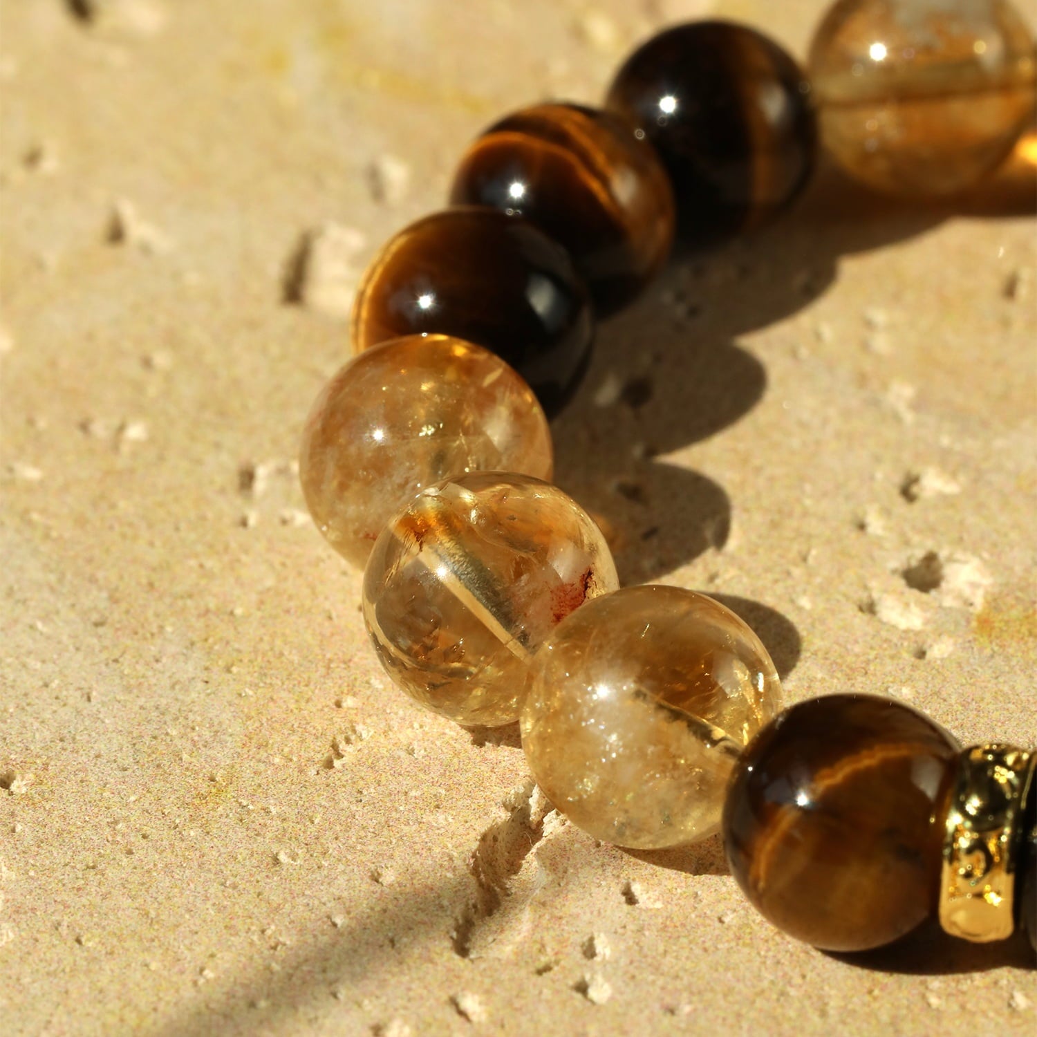 • Colors: The golden hues of Rutilated Quartz blend harmoniously with the earthy brown tones of Tiger Eye, creating a warm and empowering aesthetic.