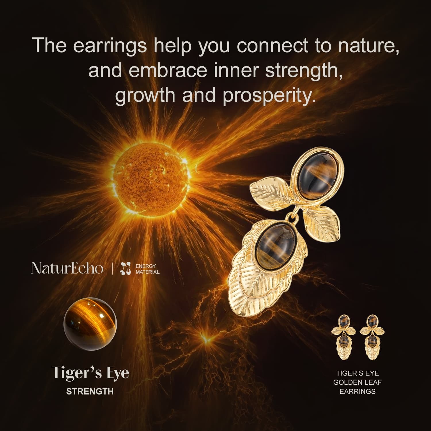 Tiger’s Eye Golden Leaf Earrings – NaturEcho