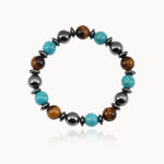 This bracelet is crafted with natural Tiger Eye, natural Turquoise, and natural Hematite stones. The combination of these three stones represents the perfect balance of courage, victory, and good fortune. The design is both simple and striking, suitable for daily wear or as a meaningful gift.