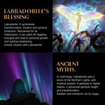 Crafted from natural Labradorite, each bead showcases the stone's signature iridescent glow, reflecting light in a range of stunning hues. Labradorite is renowned for its ability to clear negative energy and protect the wearer from external influences. The triple-circle design adds a symbolic layer of strength and protection, enhancing the bracelet's effectiveness in grounding and shielding the wearer.