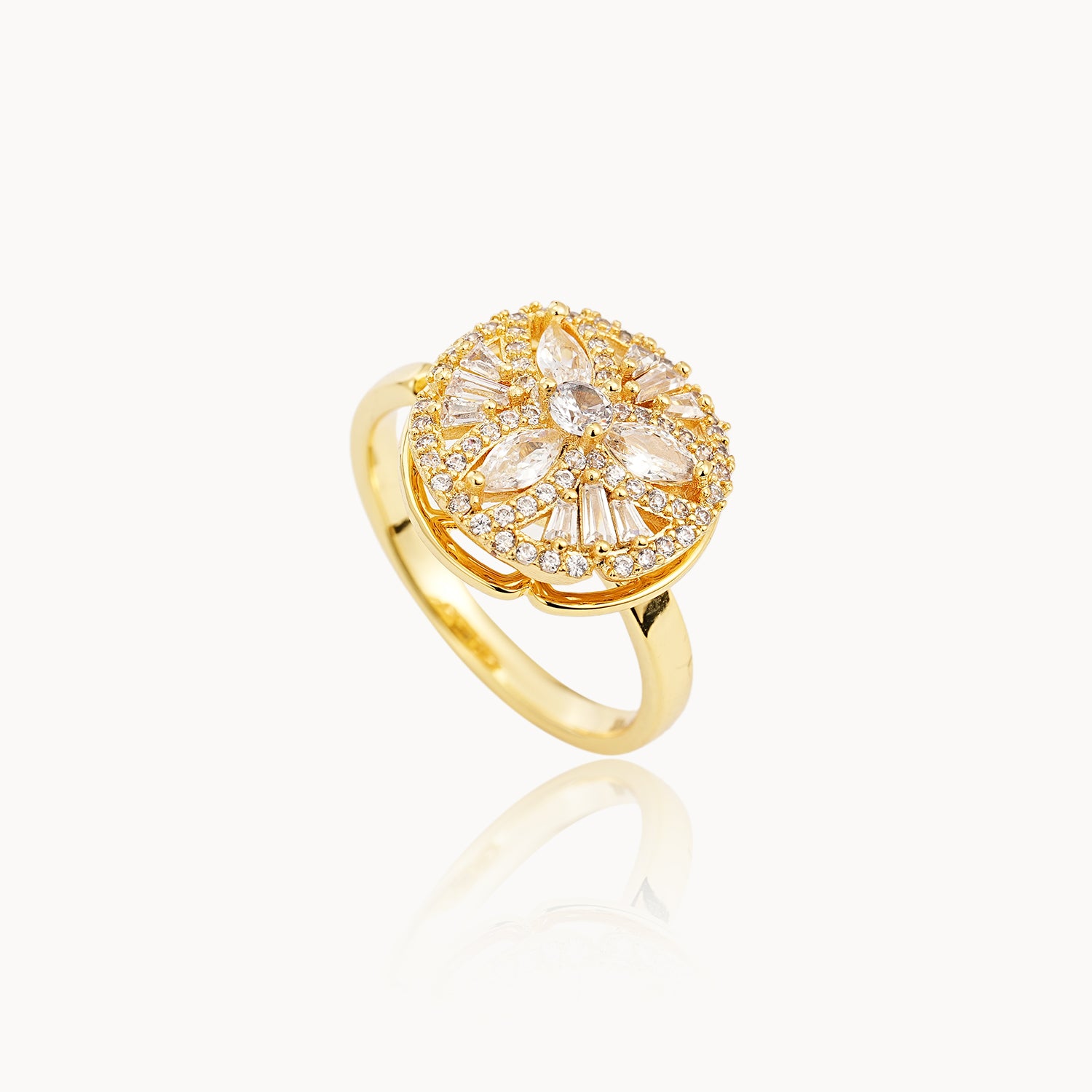 • Materials: Crafted with sparkling zircon and premium copper plated with gold, the ring combines durability with a luxurious finish.